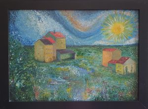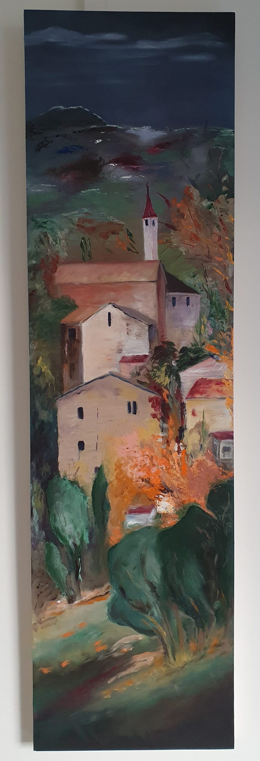 French village Drome, 2025, Oil on woodpanel 20x90cm