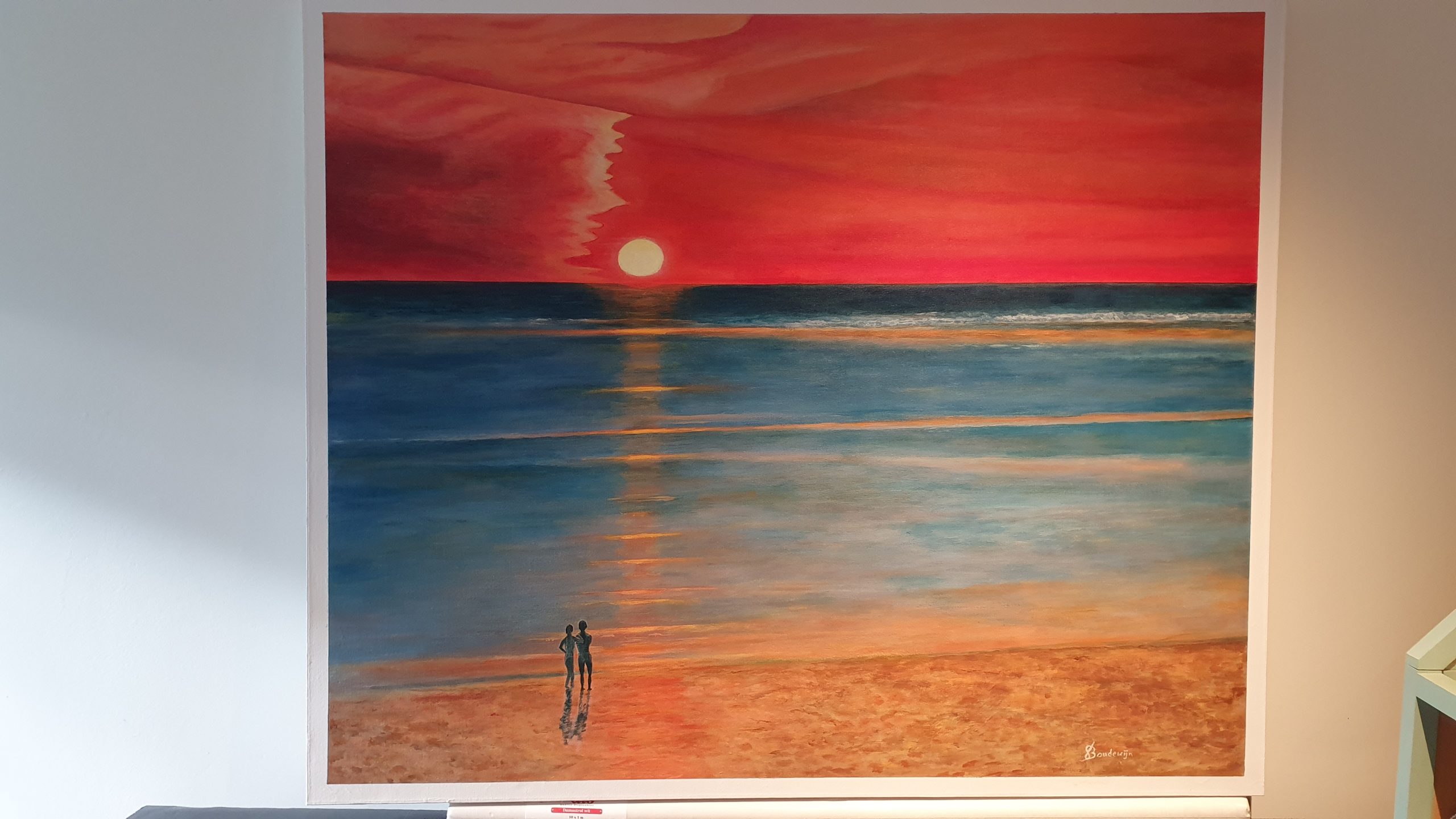Ondergaande zon Bretagne 2023 Acryl op canvas